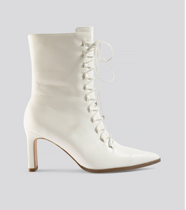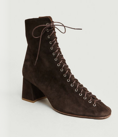 Lace-up boots are really easy-to-wear women’s boots, whether with pants, a dress or a skirt. We never tire of their lacing and they come in multiple colors and materials, whether in leather or suede; in neutral or colored colors, they make us fall for it! Brands come out with beautiful designs often combined with the pointed or square toe trend. Moreover, JONAK opts for green patent leather boots with square toe.